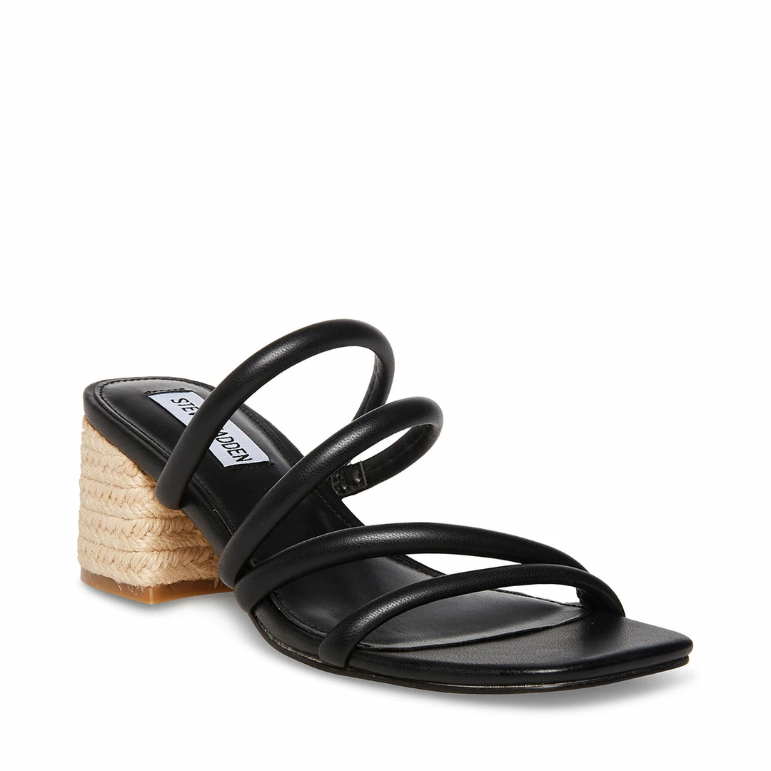 A rope-wrapped block heel brings perfect summer style to this strappy slip-on sandal.