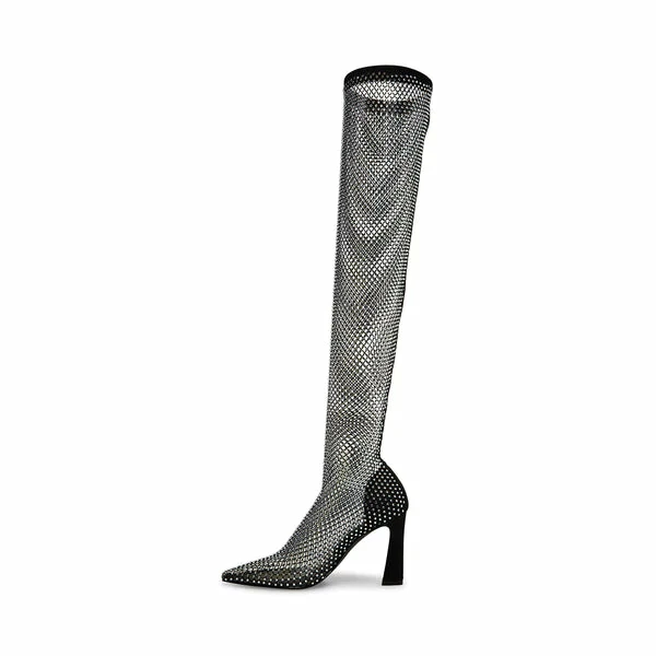 These dramatic glamourous SAPPHIRE boots just scream: “Yes, Queen!”. Adorned with a glimmering mesh, wear these beauties on your next night out and pair it with the perfect mini dress!