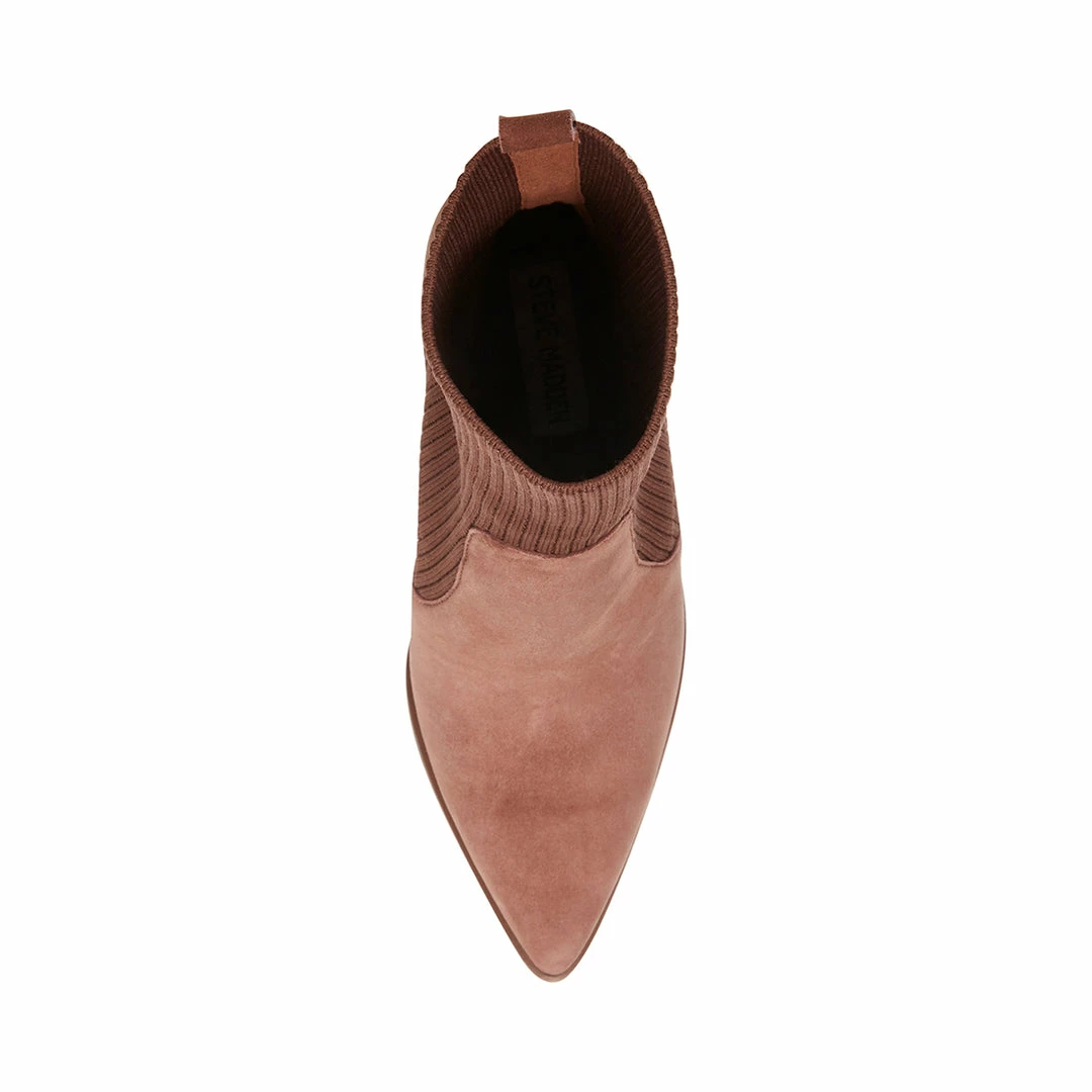 Sharp lines and an avant-garde angular heel give this boot a killer look, while a soft knit shaft allows for easy pull-on entry. A fierce finishing touch for any fashion-lovinβ lady.Β