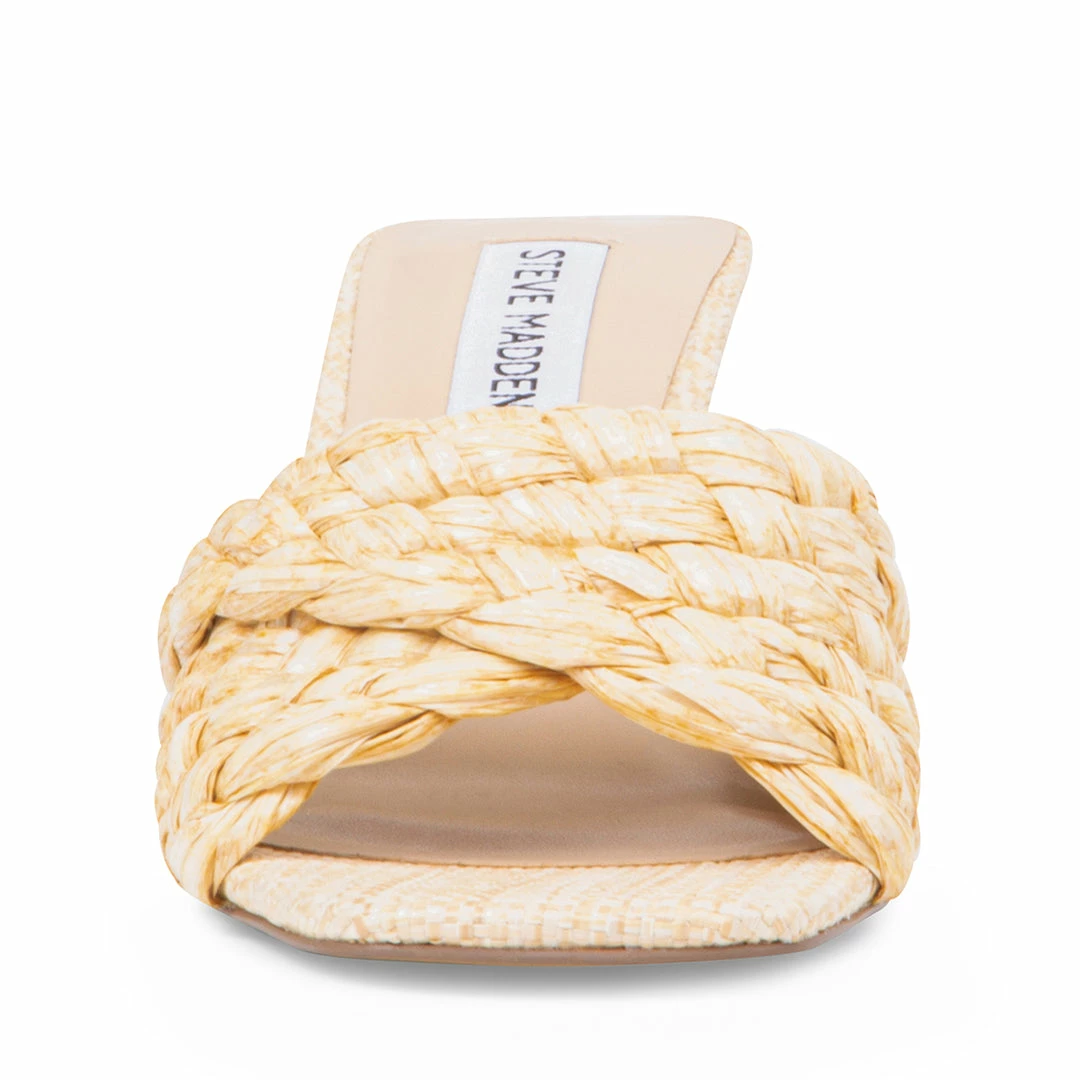 Prepare for warmer days ahead in THAI. A sleek slip-on mule gets a trendy upgrade with textured straps and a low architectural heel.