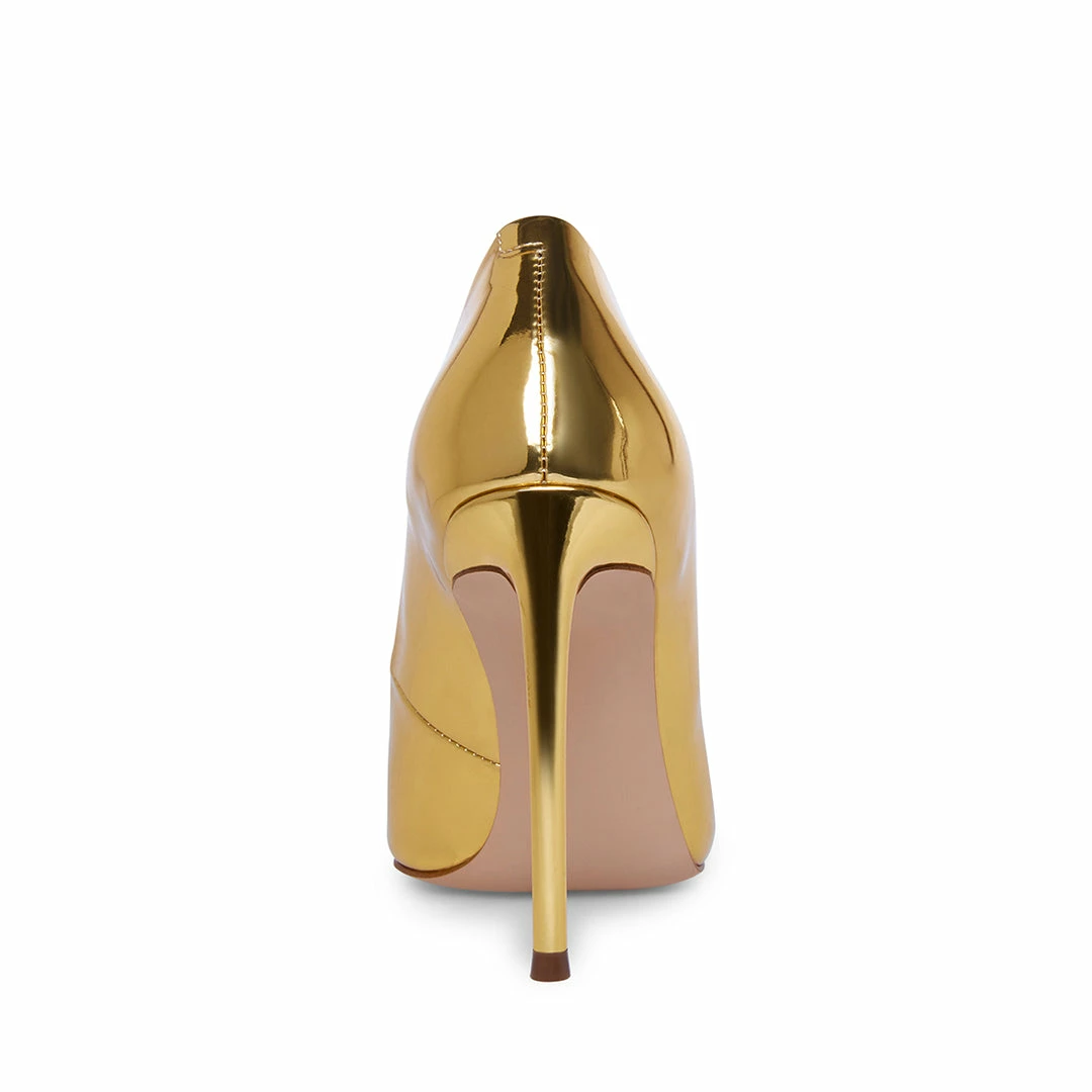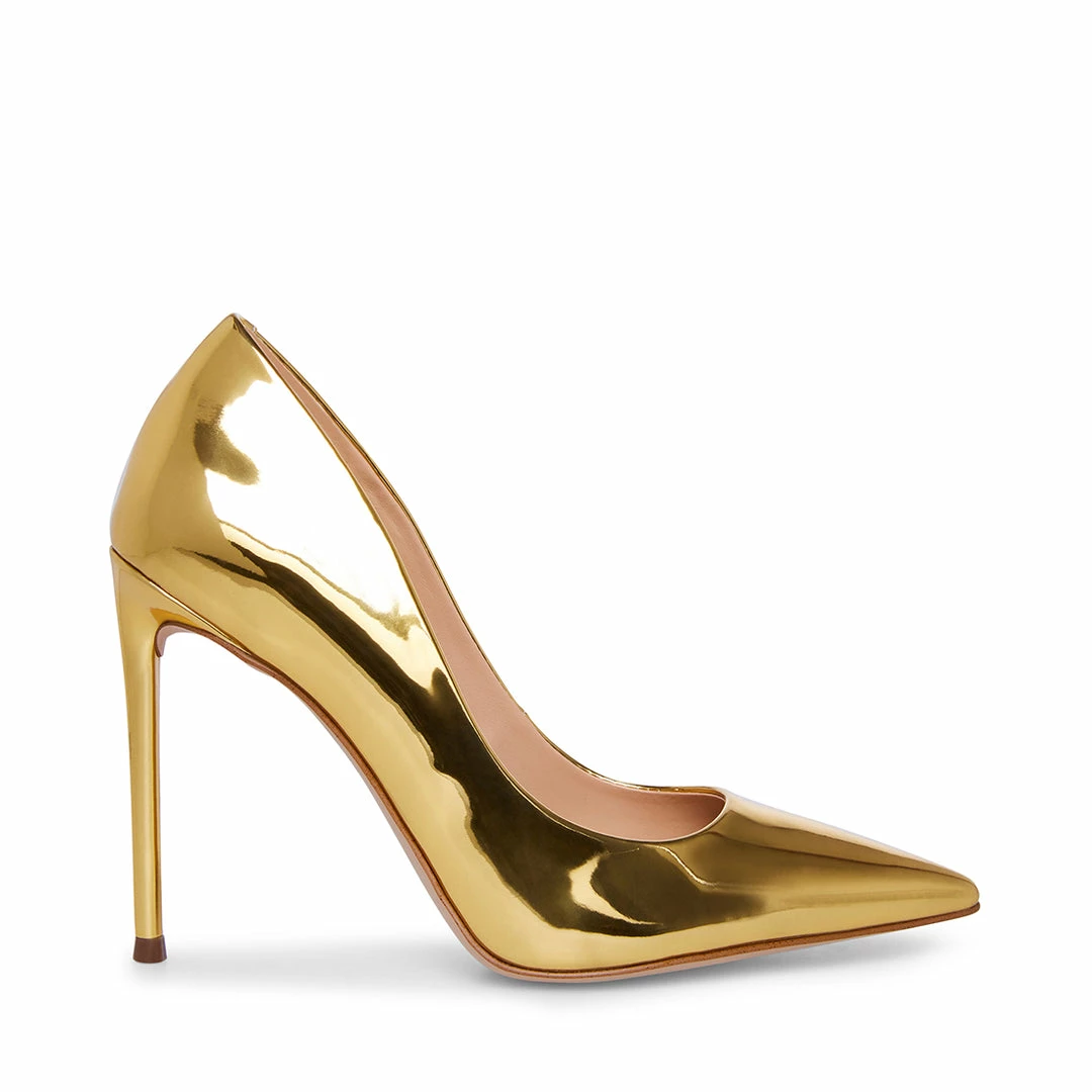 Shiny, sharp and seductive! The VALA pump delivers all of the above, featuring a tall stiletto heel, pointed toe and reflective patent or printed surfaces.