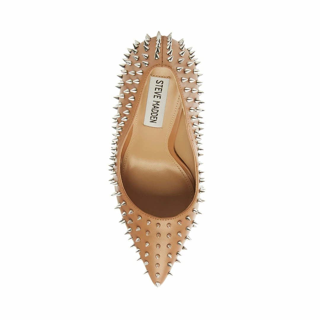 Make a fierce statement day or night donning VALA-S! This sharp pump is covered in metal spikes that accentuate its pointy toe and stiletto heel.