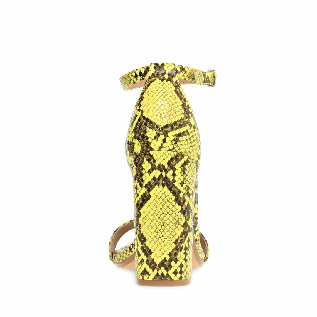 Get your block heel groove on in CARRSON.Β Features single band across toe with adjustable buckle strap at ankle.Β This must-have sandal can be paired with everything from skinny jeans to bodycons.
