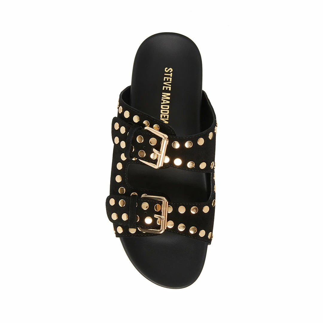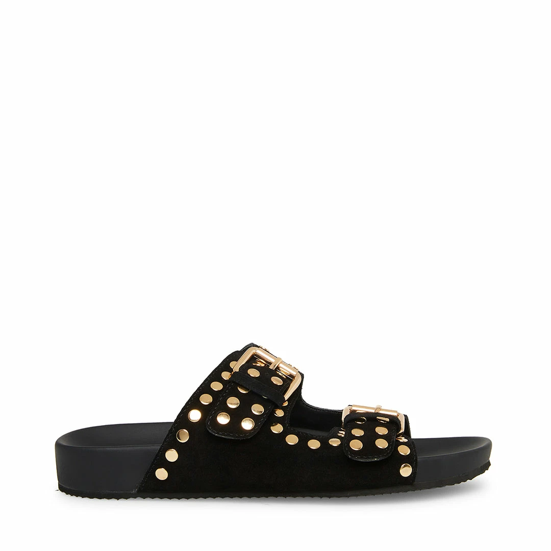 Gleaming and smooth round studs punctuate a slip-on sandal that makes an effortlessly cool statement.