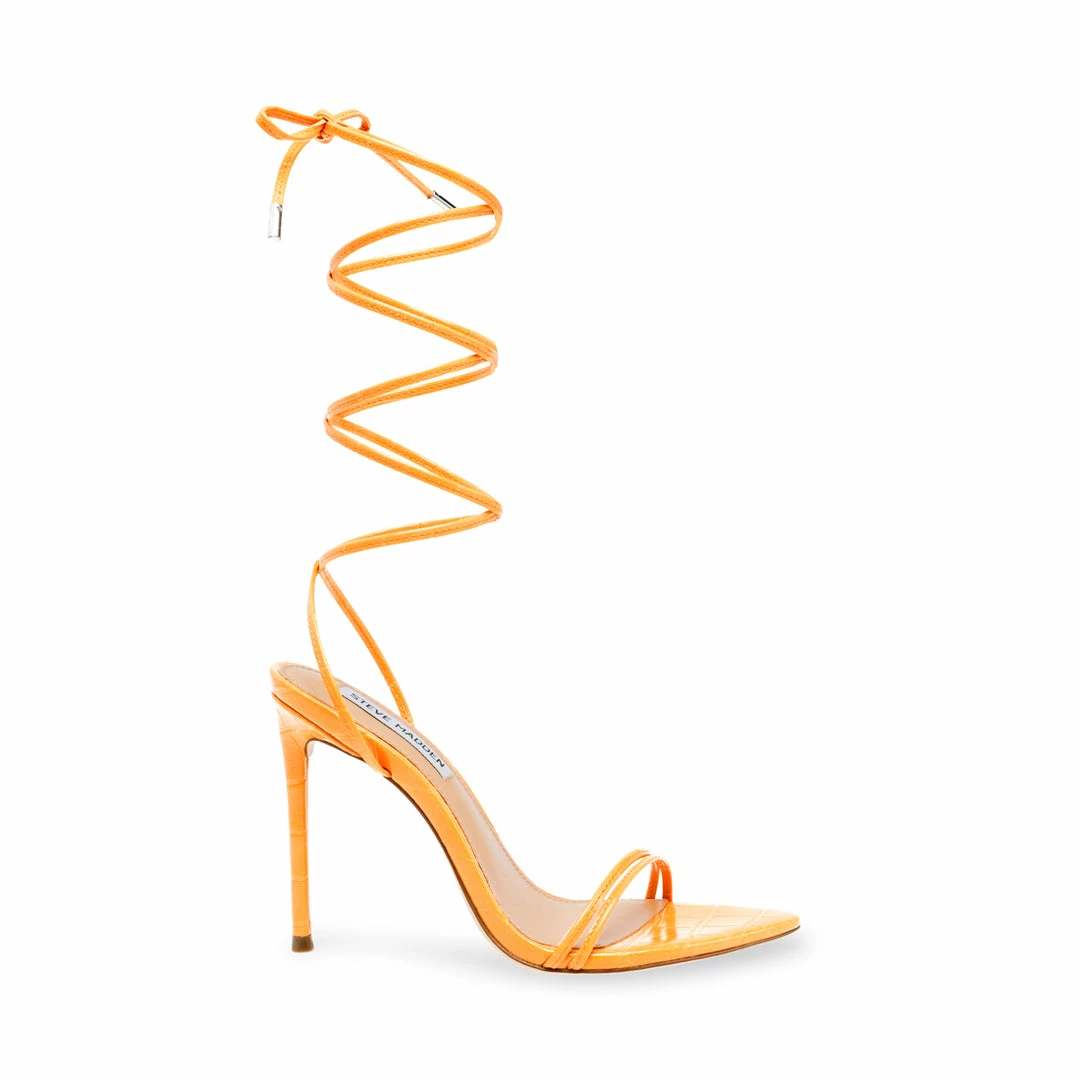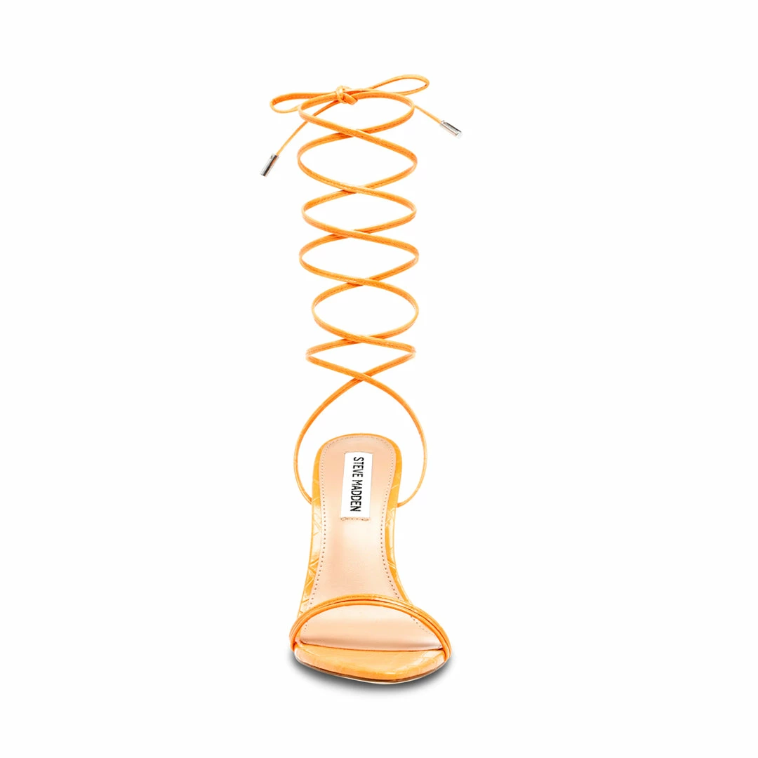 Wrap-around laces elevate the look of FLAMIN, a standout stiletto sandal with a pointy open toe that’s ready to step out on the town.Β
