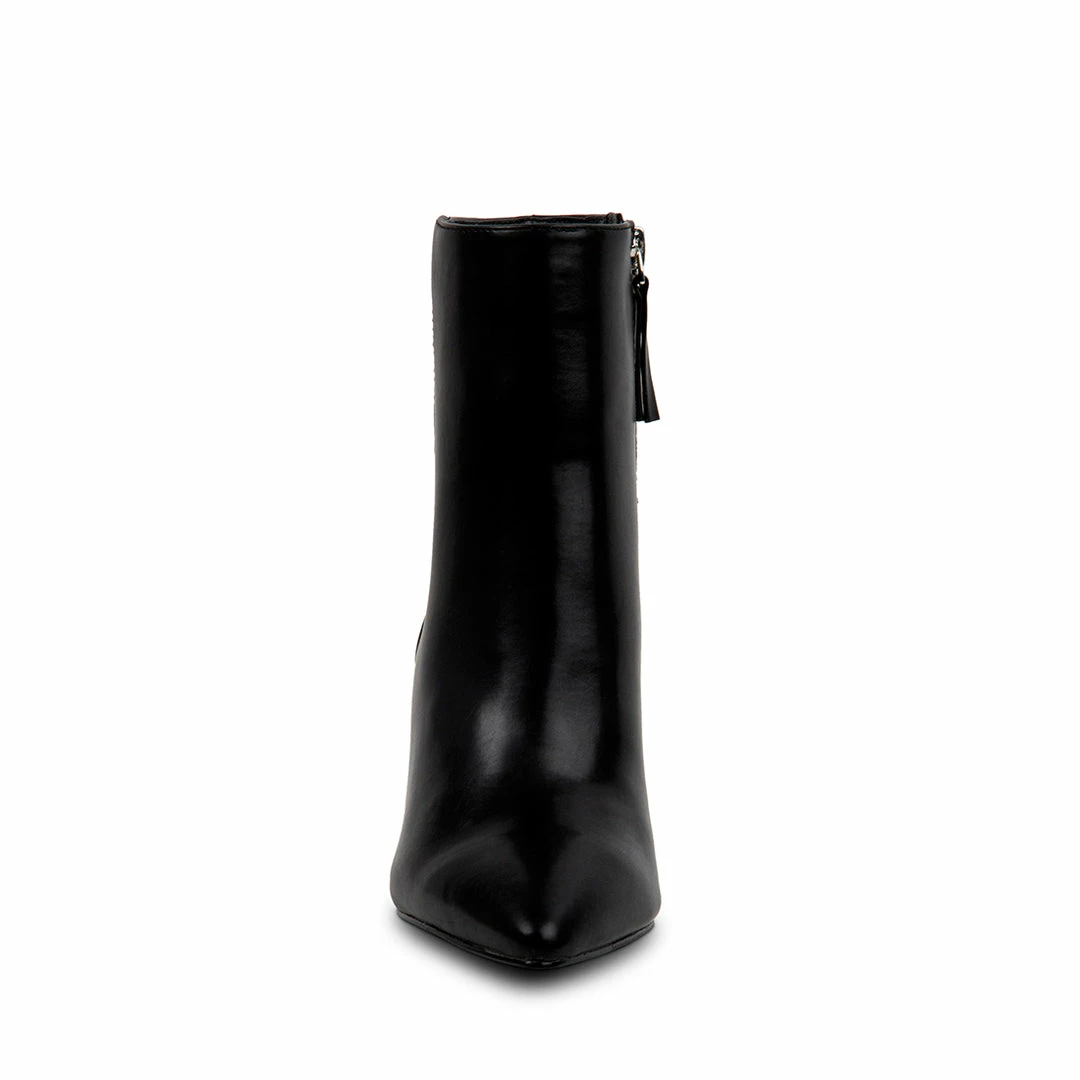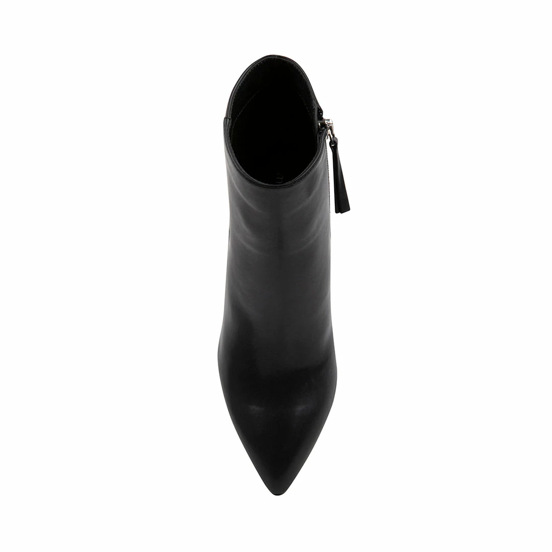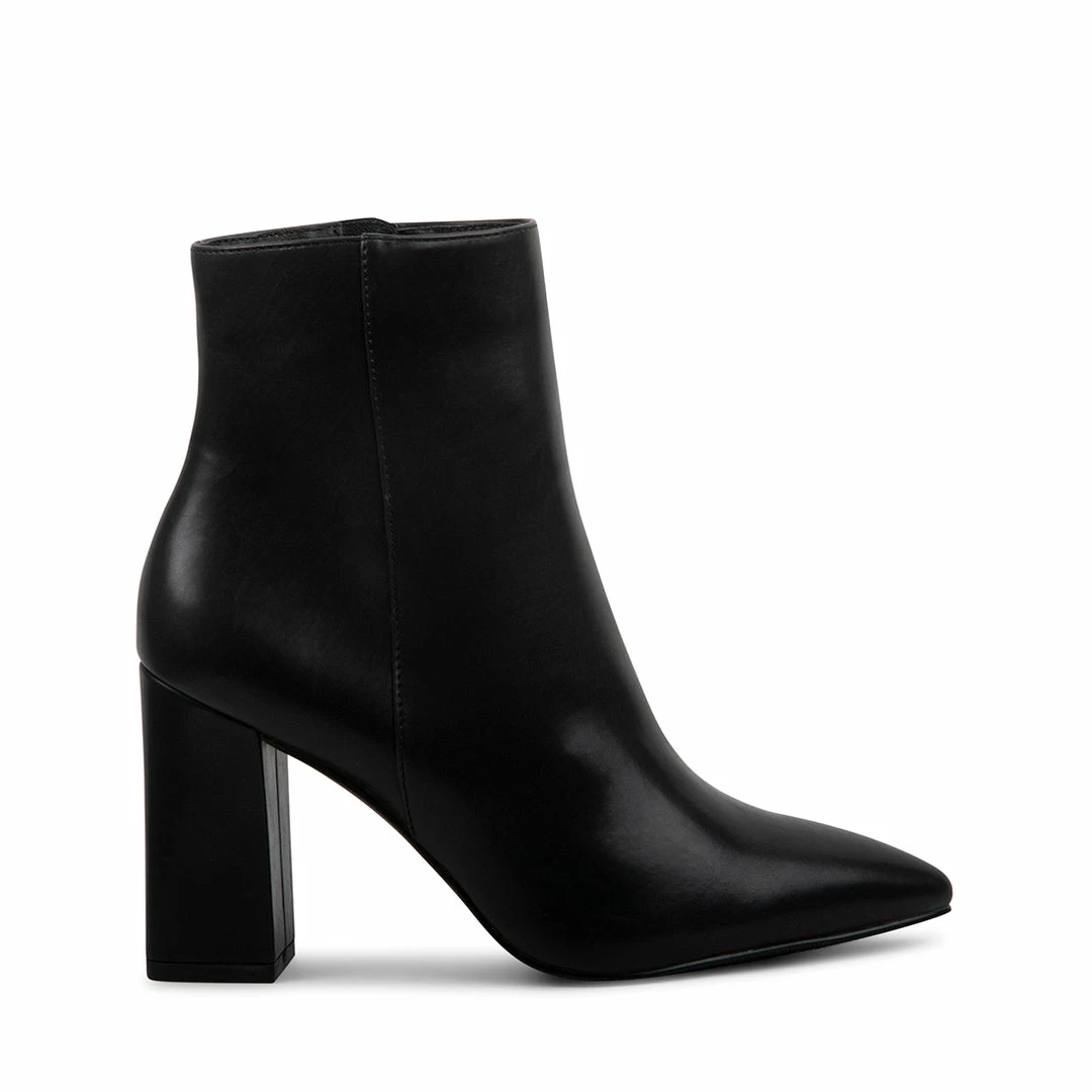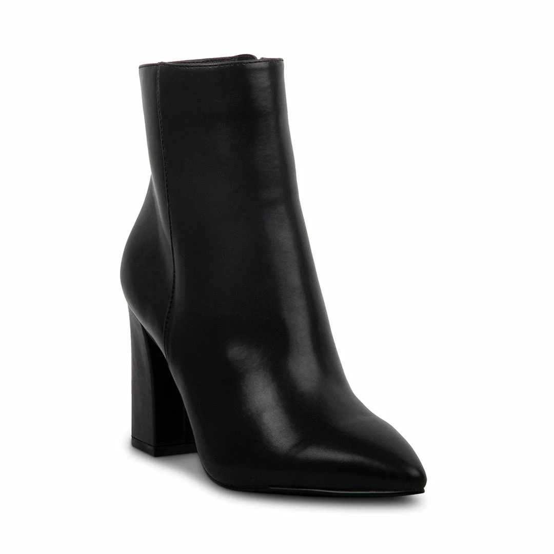 FLEXX your stuff in this black faux leather ankle boot! It showcases a block heel and sleek pointed toe. Pair it with a skinny jean for an unfailing, stylish look.