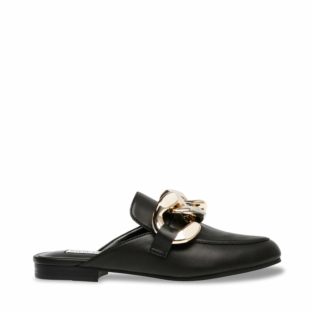 A gigantic chain link strap lends lighthearted luxury to this classic mule β a choice silhouette of the season and favorite of cool girls everywhere.Β