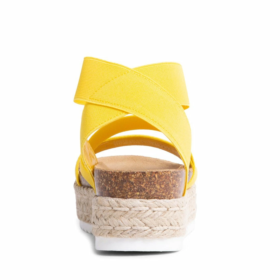 Featuring a stacked cork and jute flatform sole and thick sporty straps, KIMMIE makes a modern-rugged fashion statement while providing support that your feet will thank you for.
