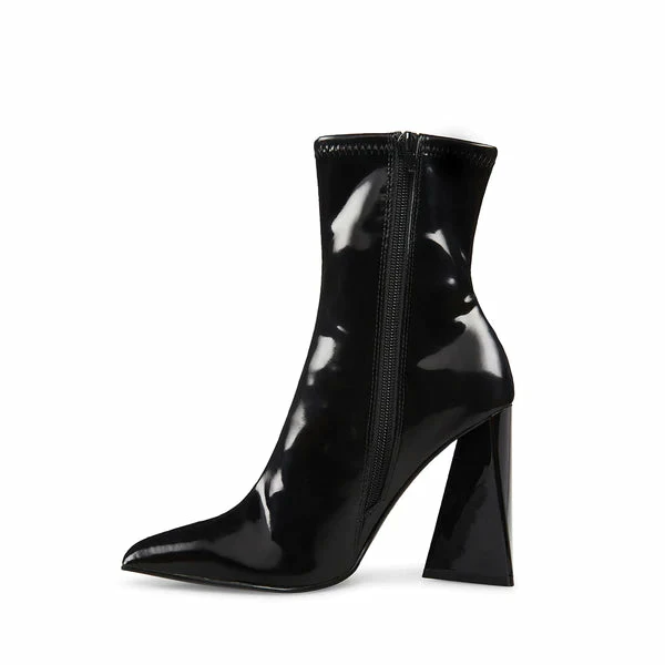Stroll the urban streets with confidence in KIRA. This sleek pointy toe bootie is supported by a triangular heel and has a side zipper for easy wear.