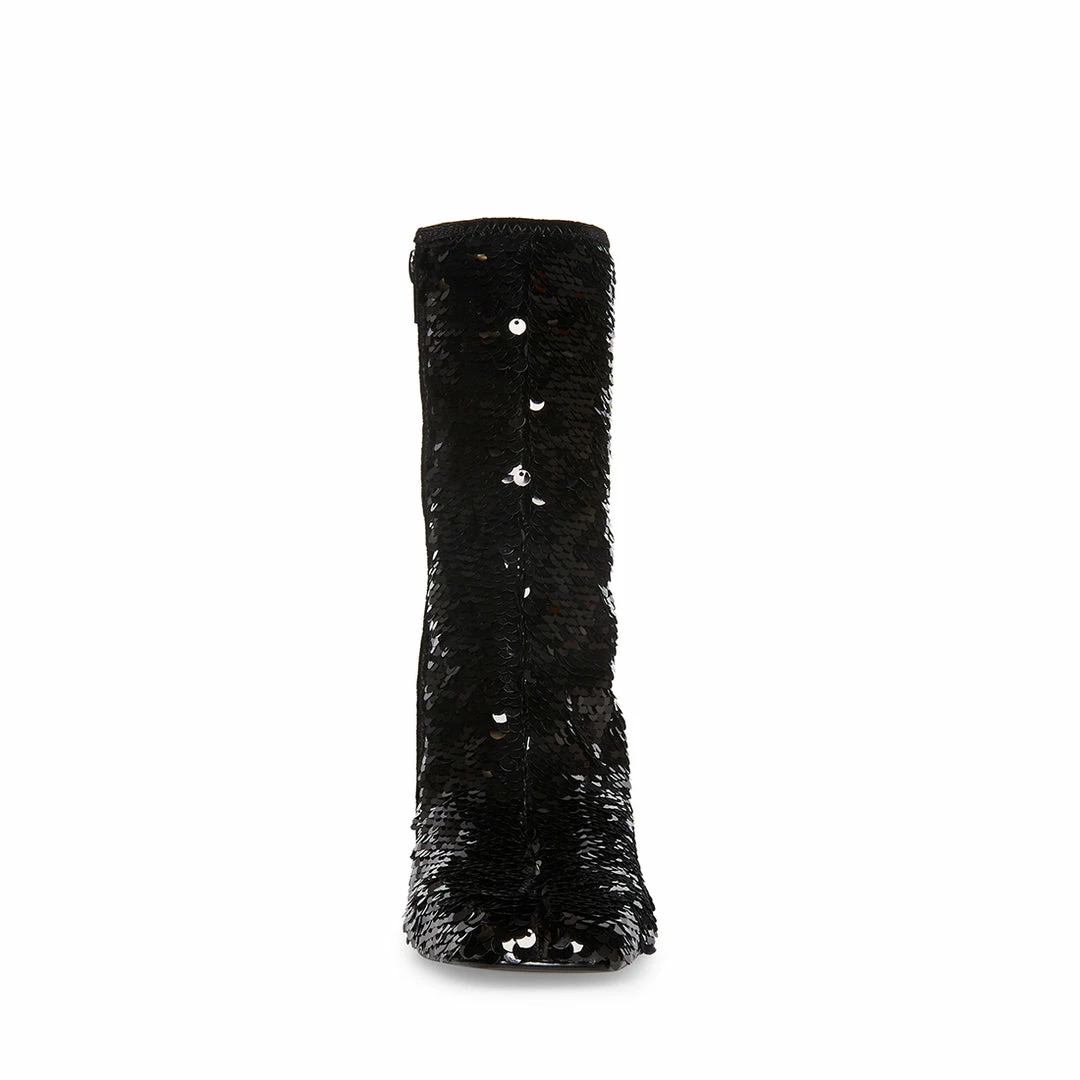 We can thank the glam factory for these show stopping booties. This pair sits on a subtly flared heel with all-over sequins for that burst of metallic we love.