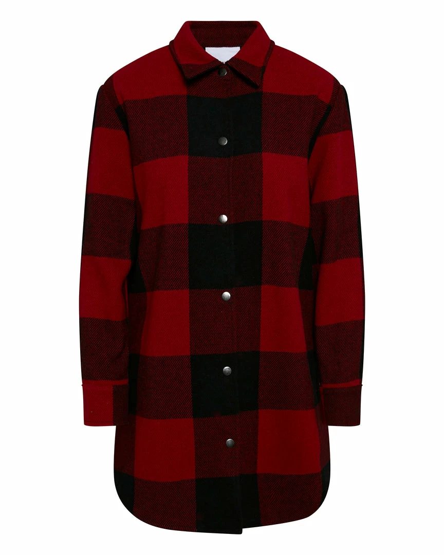 For the great outdoors or just restaurants with great outdoor patios. The Eldridge buffalo plaid oversized coat has a snap front closure and snaps at the cuffs.