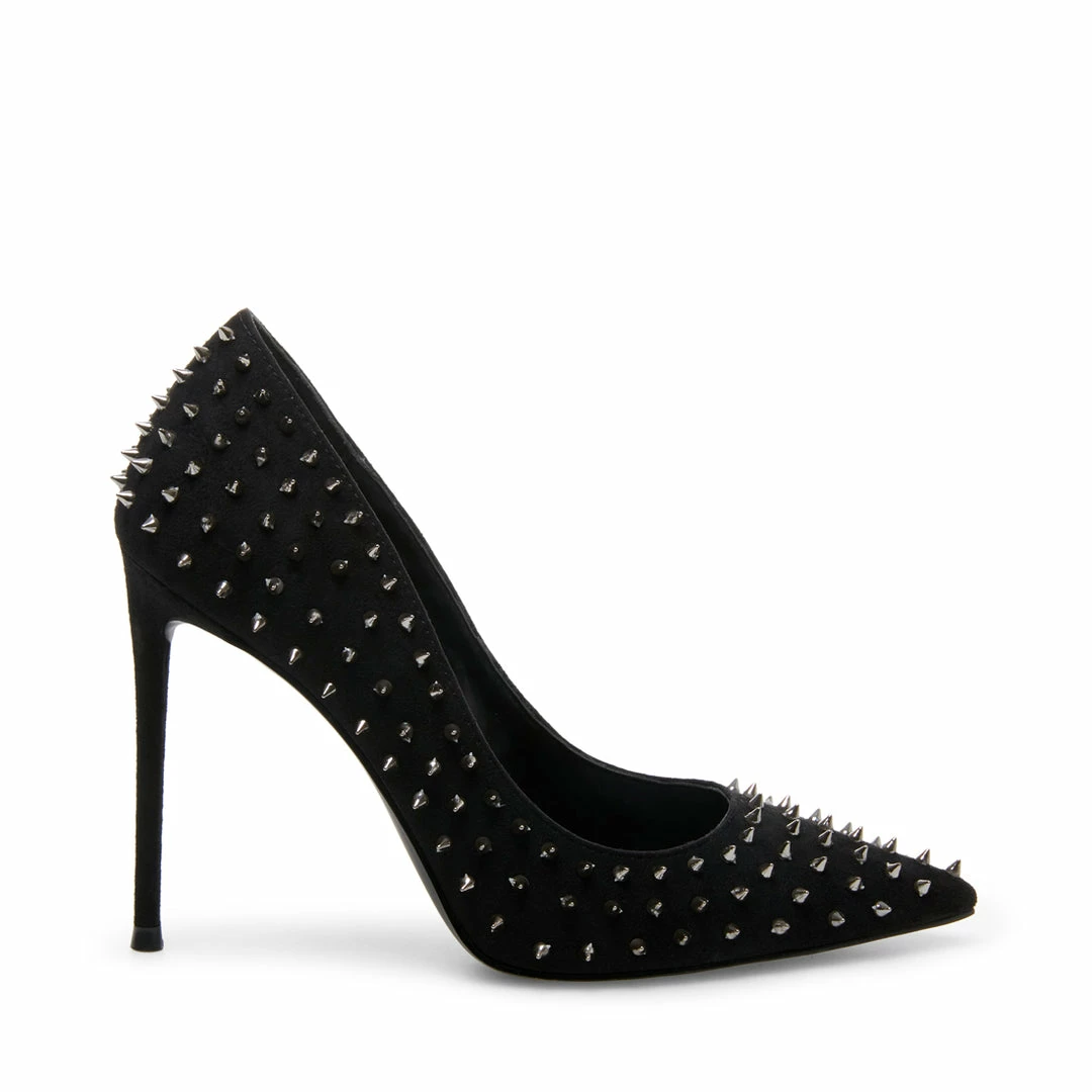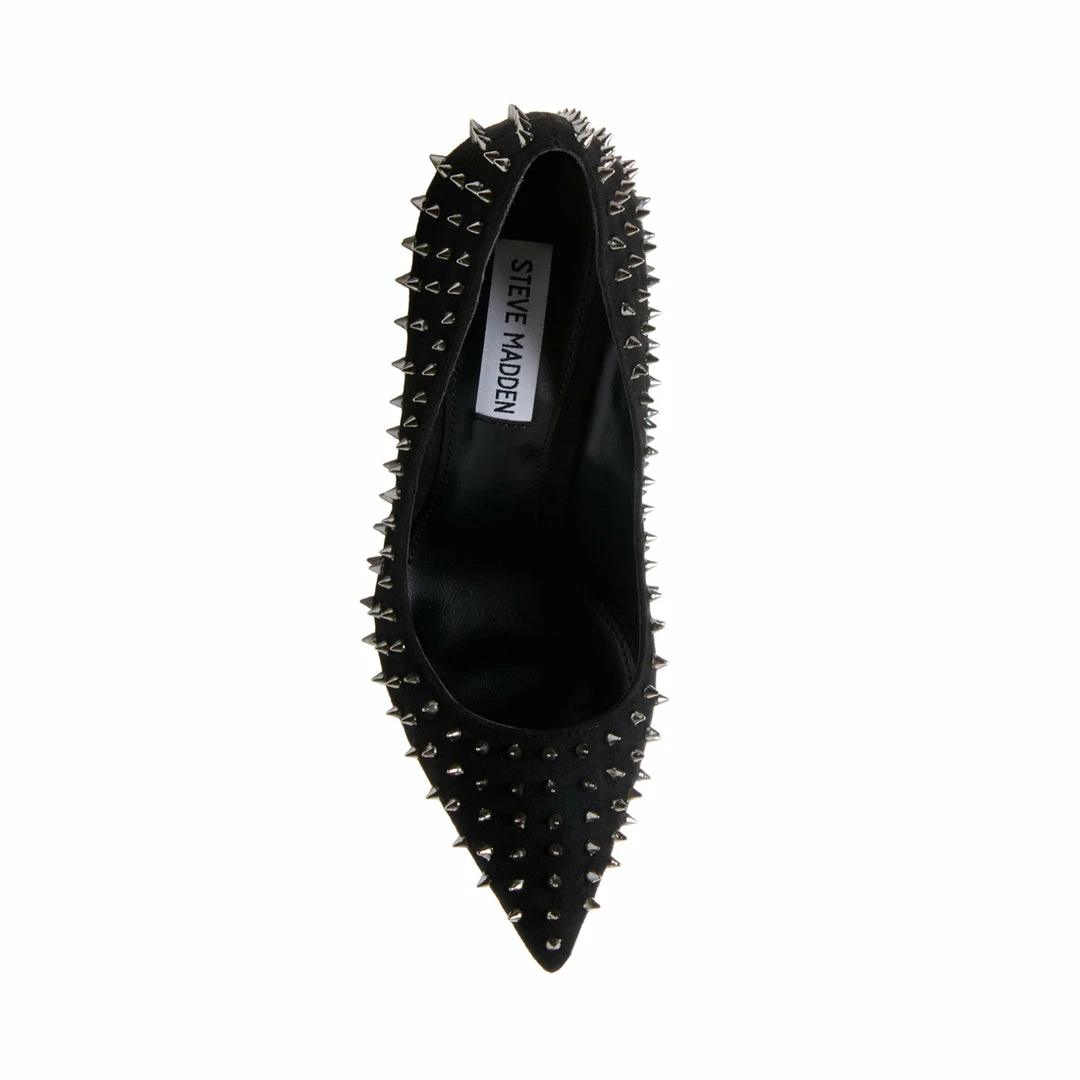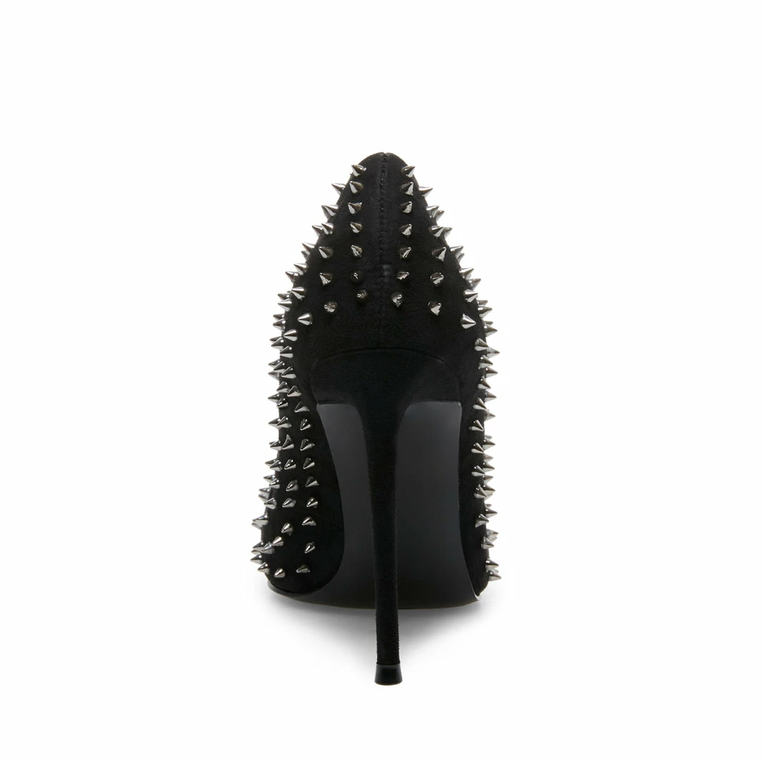 Make a fierce statement day or night donning VALA-S! This sharp pump is covered in metal spikes that accentuate its pointy toe and stiletto heel.