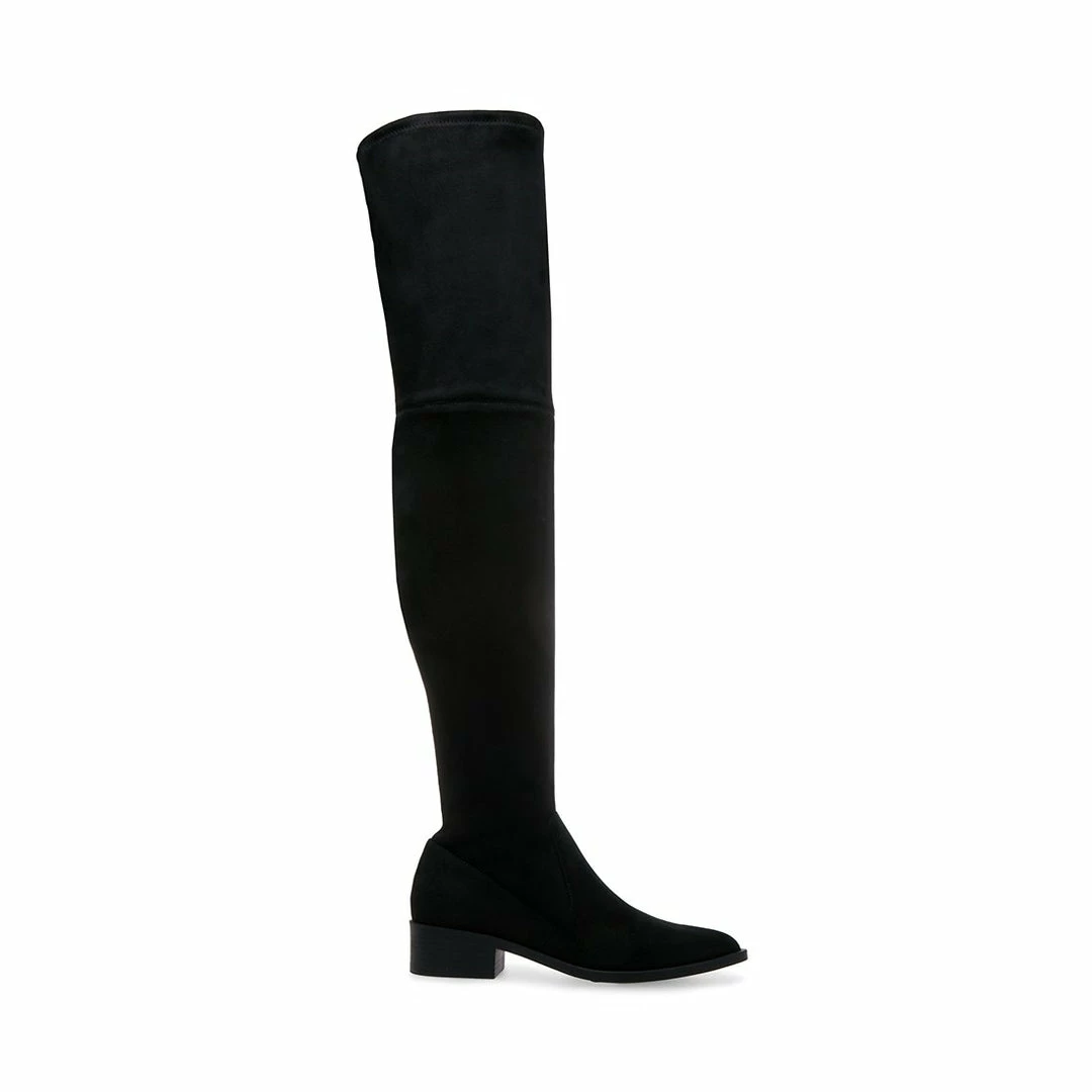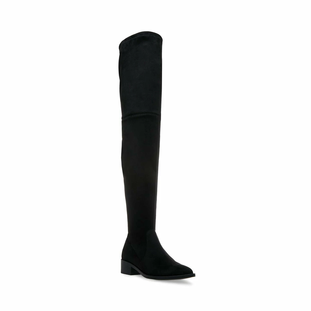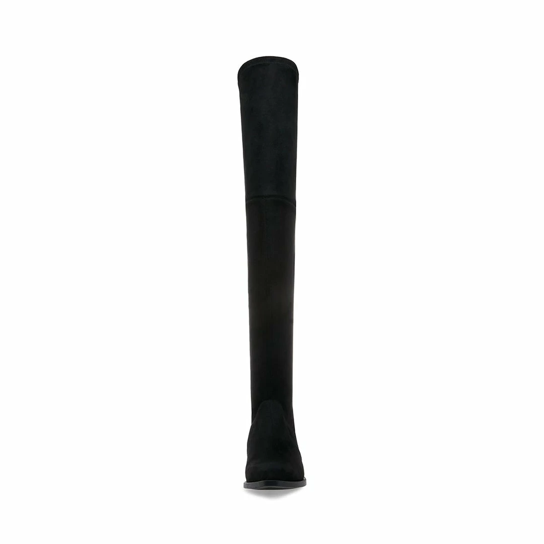JODY makes a dramatic statement with an over-the-knee shaft, while the boot’s minimal detailing and modest heel ensure versatility and lasting comfort. Matte microsuede surfaces add tasteful texture.